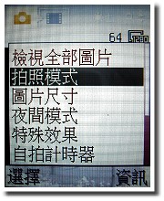 從拍照介面的部份來看,很明顯可以發現 Z558i 並沒有太重大的突破,依舊延續先前產品的操作介面,能夠於拍照的過程中調整拍照模式、圖片尺寸,選擇特殊效果、夜間模式及自拍計時器等功能。而拍照模式中同樣具備普通、全景照片、邊框和連拍等四種項目;圖片尺寸則有 1280 × 1024、640 ×480、160 × 120 三種解析度規格。另外,為了提高檔案的靈活運用性,在拍照之前,使用者可以先行設定檔案的儲存位置,能夠直接存於手機中,或者是存於記憶卡,依照個人需求來做調整。