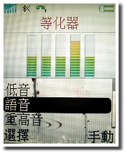 至於在 MP3 音樂播放的介面操作,也和拍照模式相同,與先前產品沒有太大差異點,維持同樣的選項設計,進入播放器之後,會跳出現在播放、演出者、樂曲、播放清單和影片等選項,供使用者做檔案的分類。而播放中的畫面同樣是具有顯示歌曲,及調整前後首曲目的箭頭圖示。如果想要自行設定播放的音場環境,可以透過等化器的功能來做改變。播放模式具備隨機和循環兩種機制,可依照個人的收聽喜好更改。此外,檔案的排序方式也能夠依據你的使用習慣,選擇是依演出者、標題,或者是按加入順序的原則來做排序。