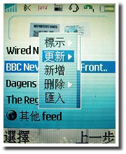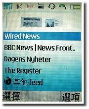 在 Java 的應用程式當中,備有「News Reader」選項,這是一個類似 RSS Feeds 新聞閱讀器的程式,只不過,Z558i 選擇以JAVA方式呈現。使用者同樣可以新增 RSS 網址,並更新所有網站的頭條新聞,便能夠在短時間內吸收所有一手資訊,再決定是否下載、繼續閱讀。