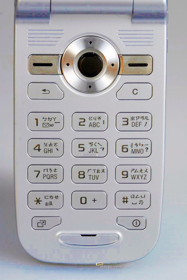 翻開手機後,映入眼簾的是清爽、低調的視覺效果,銀白、銀灰的色系搭配金屬材質,表達了科技產品所要強調的未來感受。五向鍵、選項鍵和數字按鍵區域,觸碰起來還算舒適,惟獨五向鍵的操作範圍過小,手指較大的男性可能會造成些許問題,很可能會不小心就誤觸到旁邊的按鈕,因而開啟不必要的功能。