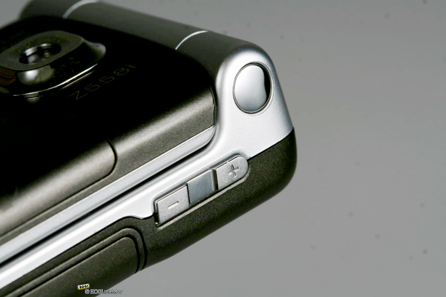 Sony Ericsson Z558i 在側邊的設計方面,以黑、銀雙色示人,透過兩色的交互運用,來提高手機的層次性。不過,Z558i 並未受到近來狂吹的薄型風影響,厚度並沒有像 Samsung、LG 等韓系手機一味追隨「超薄」,依舊遵循自家的一貫風格,未流行跟風而替手機瘦身。機身右側上方,還貼心地設計了音量調整鍵,供使用者設定鈴聲大小。