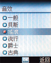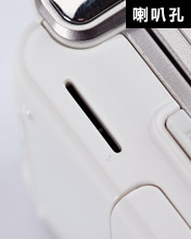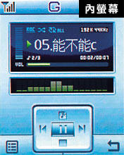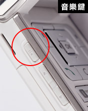 除了從選單中一一進入外,不論是闔蓋或是開蓋,長按手機旁的音樂鍵,就可以直接聽取 MP3 歌曲,簡單不麻煩!狹長的喇叭孔細歸細,但音量卻十分驚人,當然,搭配隨機附贈的耳機,音質的表現會比直接播放出來的效果好些。