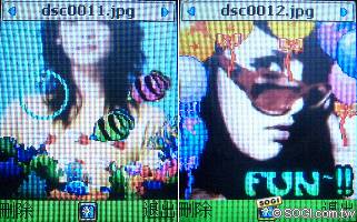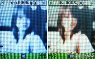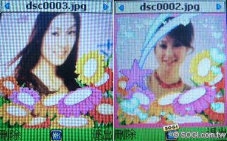 內建130萬畫素的i3100,進入拍照模式後可選擇變焦、連拍、白平衡、明亮調整等功能,拍完後還可後製添加圖框、圖章,或是乾脆來場色彩大顛覆的特效模式,過足變身玩樂的拍照癮。但在來電大頭貼方面,i3100就有先天條件限制要遵守了。若將解析度大於128×160的照片設為特定連絡人的圖示,遇有來電時僅會顯示部份照片,但低於此解析度的照片便可全螢幕秀出來,在拍照時可要注意一下相片解析度大小。