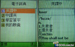 此次設有可中翻英、英翻中的行動字典功能,不僅幫助學子隨時學習語文,內建的詞彙更是驚人,使用者可依自身程度選擇託褔或是新概念英語來自我充實。另外還有可換算女性生理期的「女士行事曆」與類似奇摩造型精靈的「頭像」功能,可依個人喜好打造人物整體服裝髮型。除了這些生活應用特點外,交多個女朋友或是藏有機密的使用者可要注意了!i3100擁有可將電話簿、相簿上鎖的安全機制,只要輸入密碼,即使重開機都無法窺探你的秘密!