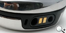 由於 Nokia 8800 採用不銹鋼機身材質,因此上蓋的背面除了數位相機外,還會有些反射效果,也可以照出我們擺放的戒指,臨時找不到鏡子,倒是可以拿來試試看。