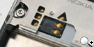 電池上方則是擺放 sim 卡的地方,不過並未提供外接記憶卡的設計,所以只能將照片或是其他資料儲存在 Nokia 8800 手機本身內建的 64MB 記憶體中。