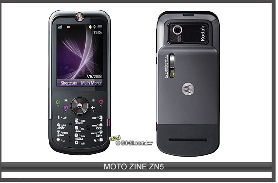 MOTO | ZINE ZN5 | GSM 四頻 | 2.4 吋 | 500 萬畫素 | 首款 Kodak 手機、氙氣閃光燈、3.5mm 耳機插槽、 Kodak Gallery 與 Perfect Touch 功能 |
