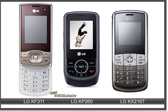 9 月 LG 除了高階換色款 KU990 之外,還分別推出入門音樂機 KP260、中階滑蓋機 KF311、通話型 CDMA 手機 KX216T 等三款新機,都是價位相當平易近人的款式,適合預算不太高的換機族群。