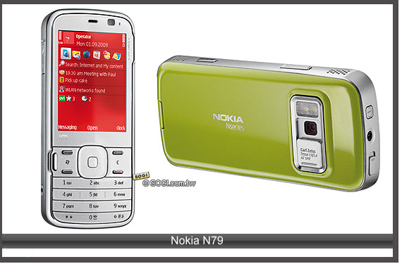 以外觀設計來看,Nokia N79 崇尚多重色系的時尚變化,在白色簡潔的直立正面外觀下,多重色系的變化則發揮於機背電池蓋上。在功能面上,Nokia N79 支援 S60 3.2 最新平台,在多媒體影音運用方面,其支援 500 萬畫素卡爾蔡司專業級認證鏡頭,並支援強力閃光燈而非氙氣閃光燈,平時只要打開鏡頭蓋,即可立即進入完美的行動拍攝生活。Nokia N79 上市時間未定。