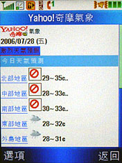 Yahoo!奇摩也可瀏覽最新天氣預報,出門前手機點兩下,今天的溫度和天氣資訊迅速獲得,該穿什麼衣服、該帶雨傘與否,透過手機跑馬燈輕鬆得知。