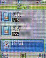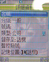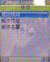 選擇新增電話之後,就會出現電話號碼、郵件地址、郵件名單三種選項,不同的選項顯示的形式就不同,分別以電話、E-mail 和分組聲控撥號為主。按進你想要的形式,在一一輸入資料,# 字鍵可以切換輸入法,輸入好了按完成就 ok 囉!
