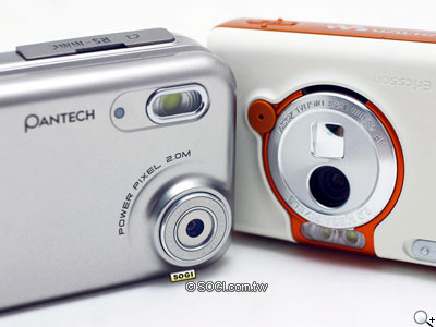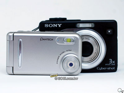 Pantech 已經在韓國發表過類似造型的手機,是為韓國第二大電信 KTFT 訂製的 PG-K6500,詳細的資料可連結到韓國 Pantech 官方網站http://www.curitel.com/html/product/lineup/feature.asp?serial_no=52 。不同的地方在於,當時 PG-K6500 只有內建 130 萬畫素相機,PG6100 再將相機提升到了 200 萬畫素。將 PG6100 和真正的 DC 擺在一起,手機和消費型相機外型上的界限,已經越來越模糊了。