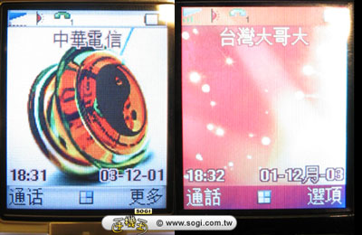 螢幕尺寸為 32 × 38 mm,雖與 T610 一樣,但T630在螢幕材質上做了改善,T630 使用TFT 面版,與 T610 的STN LCD螢幕,畫質及亮度上明顯有差,TFT 可以在強光下仍在可視的範圍內,STN 螢幕的亮度在強光之下,可能就略遜一籌,只可惜我們在當場測試時已經是晚上了,未能及時在日光之下做此差異的報導,但現場仍是可以明顯的看出其中的差異,就請各位張大眼睛看清楚了。(以下各圖右側為 T610,左側為 T630)