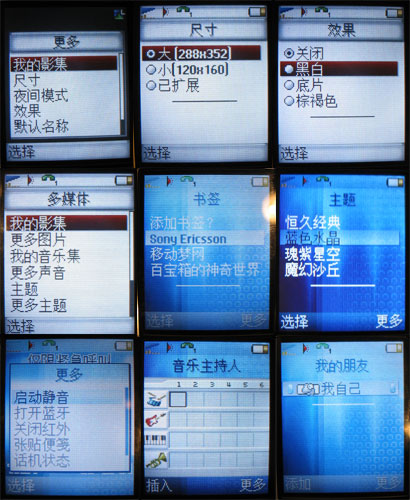 其他的功能大都與 T610 是相仿的,故在此就不多做介紹了,比較特殊的當然就是 MUSIC DJ 來做鈴聲編輯、佈景主題更換與下載改變裝飾改變心情、相機各種效果功能編輯、同步功能來與你的 Mac 連線(當然,PC 也是可以)、藍芽功能與周邊用品連接,當然還有紅外線功能讓你可以與電腦設備連線來傳送圖片或鈴聲。