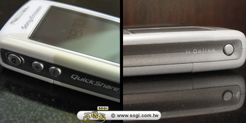 鏡頭轉到機身右側去,馬上就找到相機快速鍵及音量鍵,並且在下面加入了從 T610 就有的 QuickShare 功能,強調它們重視的快速分享歡樂的特性,讓你在任何時候都可以把玩你的歡樂,再邀親朋好友一起加入,不放過任何一刻的歡樂氣息。而左側都與 T610 一樣有個快速上網鍵,輕輕鬆鬆就可以遨遊網路,當然,請先申請 GPRS 哦!厚度上,我們以十元硬幣來比較,T630大約佔了2/3,小編個人認為T630的厚度算合格了,至少握在手中不會有笨重的感覺。