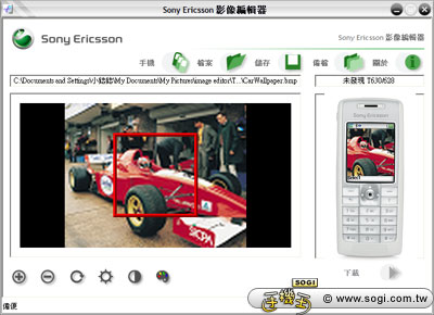 可自電腦直接選取圖片來傳送到手機,中間的紅框為在手機中的螢幕範圍,並可在圖上任意移動紅框來擷取想要的區域。並可針對每張圖的 RGB 色來做顏色的調整,可說相當的簡便。