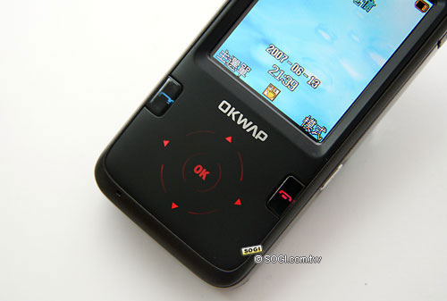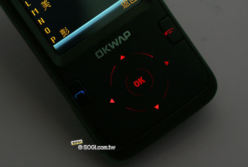 趕搭巧克力熱潮,C150T 是 OKWAP 首款內建熱感應觸控鍵的手機,直立式機身、以及刻意打造的極簡、俐落感,除了通話掛話鍵之外,螢幕下方就只剩熱感應五方向鍵,好處在於感應鍵的反應靈敏纖細、但使用者可能須要多花一些時間去習慣這樣的操作方式,否則就會像小編一樣,三不五時就誤觸感應鍵。