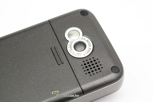 OKWAP C150T 搭載 200 萬畫素相機,在機身背後鏡頭的旁邊就有「2.0 MEGA PIXELS」的字樣,同時具備自拍鏡輔助。此外,好像散落芝麻般的揚聲孔也設置在機身背後,音量非常之大,效果相當令人滿意。