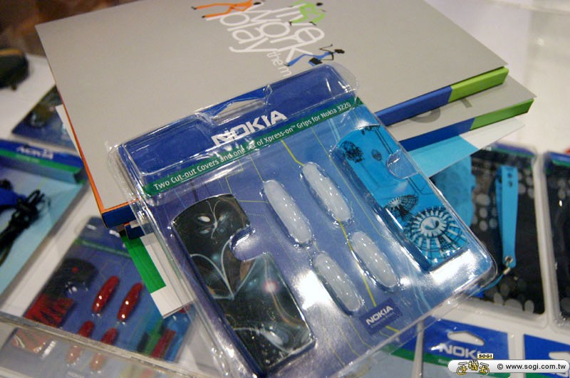 Nokia 3220 背部可更換彩殼,現場也展出多款趣味彩款,還可以各別更換兩側的小燈,讓使用者在搭配上可以自由的運用 Nokia 3220 所發行的各種有趣彩殼。