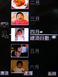 可以根據月份來分類圖片,是目前所有的手機當中,整合最好的介面之一,還可以輕易的進行縮放功能。另外,和 W910i 一樣,W760i 在聽筒兩邊的 AB 鍵,都可以快捷進入圖片瀏覽。