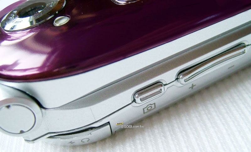 Asus J105 左側是慣用的「音量調節」與「相機快捷鍵」;順道一提,難得晉升 CCD 感光元件的 J105 ,雖然有相機快捷鍵,但是卻不能闔蓋自拍。