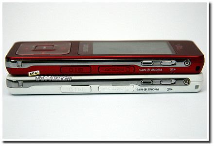 兩款紅白新色在機身左右兩側的設計和先前黑色版無異,右側由上至下是按鍵鎖、PHONE/MP3 切換鈕、microSD 記憶卡插槽、耳機/USB 傳輸插槽;左側則是音量調整鍵、RESET 鍵和 SIM 卡插槽。
