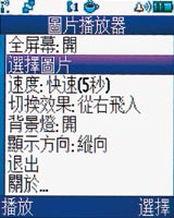 拍了一堆照片固然很過癮,但要秀給麻吉們看時,可就一點也不過癮了,等待一張張開啟、瀏覽的操作時間,總是令人感到不耐煩,MOTO在V80內建了圖片播放器,與幻燈片原理相同,照片能一張、一張自動秀在螢幕上。