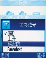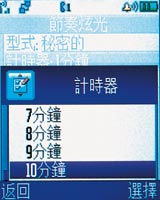 V80與E380一樣有著節奏炫光的功能,只要設定好時間和感度後,手機周圍的炫燈,就會隨著周遭環境聲音大小不同,跟著聲音閃爍著燈光。