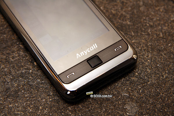 ▲ 正面的實體按鍵只有撥號、掛斷鍵、光學滑鼠鍵,黑色的部份就是光學滑鼠鍵,可以上下左右來滑動它,不過有時感覺還是去用觸控的比較方便,主要是個人使用習慣的不同,但這個鍵不至於難用。