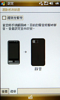 ▲ 手機觸控式靈敏度的調整,還可設定來電時翻至背面已降低來電音量。