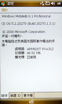 ▲ 內建 16G 的記憶體,以及 WM 6.1 最新版的作業系統。