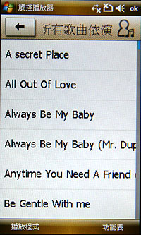 ▲ 音樂播放的介面和 F488 雷同度很高,但並非音樂手機所以完全沒有音效的相關設定。只有重複播放、隨機播放等最基本的音樂設定,音樂功能不夠吸引人。