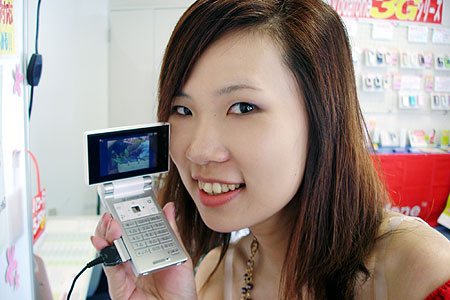 數字鍵下方也有 TV 鍵,所以直式螢幕還是可以看電視的,不過最佳視野還是將螢幕打橫看,在看節目中途,如果有來電或是 e-mail,也可切換成子母畫面,邊看電視邊回信,或是查看電話簿及行事曆。當然手機也支援邊看邊錄、或是預約錄影、節目提醒鬧鐘…等數位電視功能。連續觀看可達 4 小時以上,也支援 microSD 卡擴充容量,裝載錄下的節目內容。