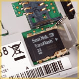 除了內建的 20MB 動態記憶體外,隨機還附贈一張 32MB T-Flash 記憶卡。(T-Flash 最大可擴充至 128MB)。