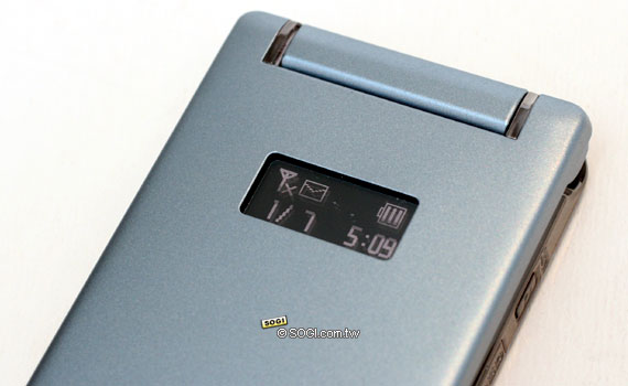 ※ 與 912T、908A (813T) 相同的白色 0.8 吋 OLED 外螢幕,可以顯示收訊、時間、電池剩餘量和來電號碼及訊息。