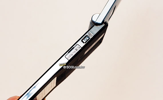 ※ 拍照鍵和 microSD 卡槽在手機的右側,記憶卡最大可擴充至 2GB。