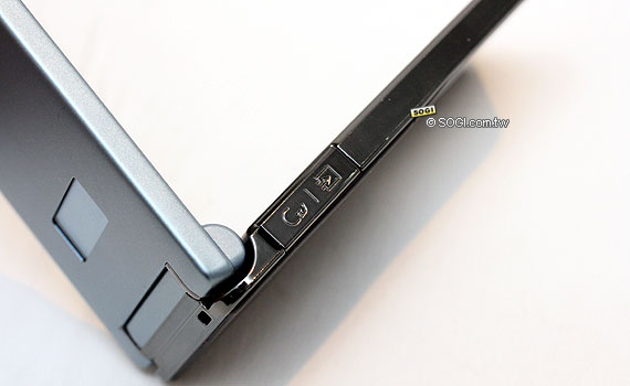 ※ 螢幕的周圍可明顯看到清晰的金屬質感髮絲紋,而 814T 的通話麥克風則是位於轉軸下方。