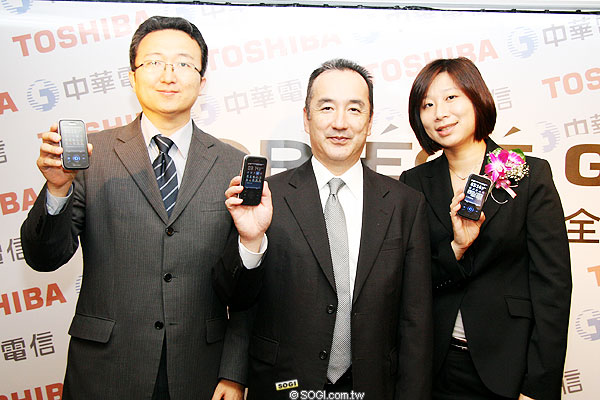 ★ 由左至右分別為 TOSHIBA 行動通訊亞洲區經理申鉉、 TOSHIBA 海外營業統括部部長山田康博、TOSHIBA 行動通訊公司台灣區約聘顧問林靜儀。