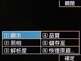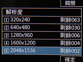 雖然是 320 萬畫素相機,內部的拍攝相關功能設定不多,感覺有點陽春。只能操作基本的影像大小選擇、品質設定、儲存位置、自動對焦、防手震…,也無提供近拍的小花功能。