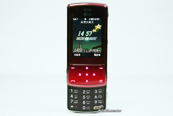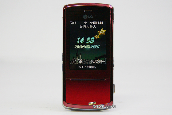 命名為「日落紅霞」的 KF510,漸層色的設計搭配金屬質感外殼,充分表現出晚霞的燦爛美感,火紅的機殼引發夜晚無止境的綺麗幻想。從推蓋的手感可知,LG 縱使在手機製造上起步較晚,但是製作滑蓋機的技術趨近成熟,紮實的手感,細膩的外殼觸感,加上創意的漸層新色,KF510 魅力不小。