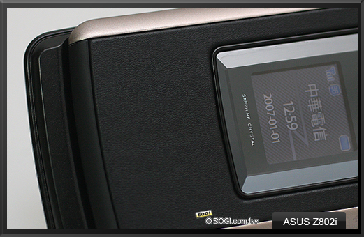 在機身正面設計上,ASUS Z802i 大量採用皮革材質設計,幾乎佔領了整個機身正面,皮革材質不僅增加視覺上的高質感,亦非常具備觸摸感。除此之外,在皮革材質週邊,也就是機身正面上蓋側邊處,Z802i 則以長條型的金屬設計來帶過,且當您仔細瞧去,在這左右兩條金屬側邊上還暗藏玄機!