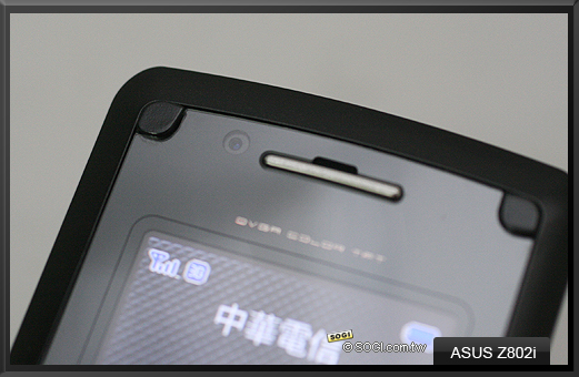 在 2.2 吋 26 萬色 QVGA 彩色內螢幕的左上方,則是 ASUS Z802i 的視訊通話鏡頭。