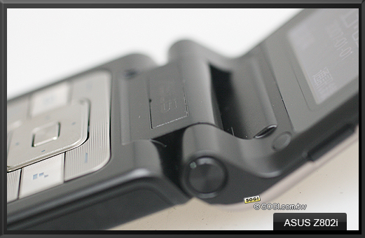 ASUS Z802i 在掀蓋轉軸的設計也是與其他一般摺疊機不太一樣,往後伸的上蓋加深了弧度的線條美,整體質感提升下也更加地與眾不同。