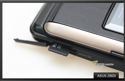 ASUS Z802i 支援 microSD 記憶卡擴充功能,記憶卡插槽位於機身側邊,抽取更換極為方便。