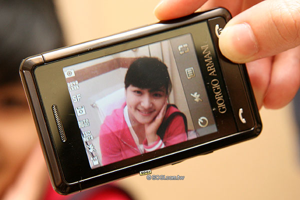 Giorgio Armani-Samsung 手機提供了 300 萬畫素的相機,透過全螢幕來預覽拍照,右邊的功能鍵可以直接觸控來設定。在沒有自動對焦的功能下,Giorgio Armani-Samsung 手機的拍照畫質沒有以往三星高階手機來的理想,只能說是堪用而已,對於時尚人士來說,也許這不是那麼重要的功能。