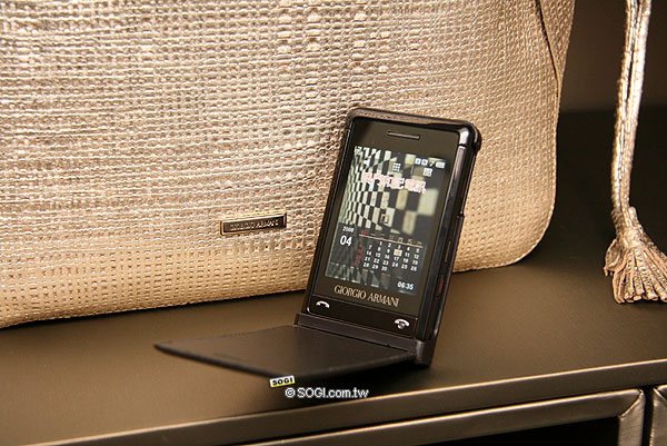 Giorgio Armani-Samsung 手機是一款 GSM 三頻手機,沒有支援目前最流行的 3G 或是 HSDPA,擺明它走的是時尚路線,功能只要堪用就可以了,所以也不需要太高速的網路傳輸,未來賣的好也許會有 3g 版本的也說不定。