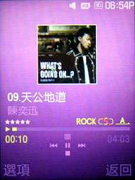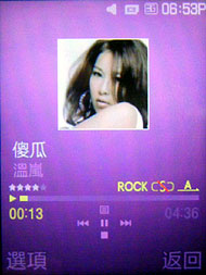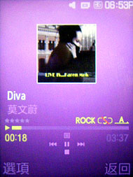 Samsung F338 採用三星新式的音樂播放介面,可以顯示專輯封面以及各項音樂資訊,還可根據主題的不同,呈現綠色、紫色兩種播放背景色。且 F338 的音質大躍進,純淨清透的高音與撼動耳膜的低音,搭配附贈轉接 3.5mm 的標準耳機,可透過高音質耳機來享受 F338 的震撼音質。