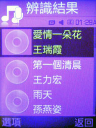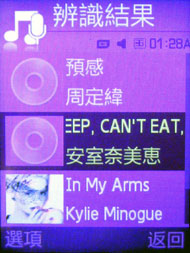 辨識出來的音樂,部分專輯還能顯示其專輯封面,更能夠去唱片行購買時方便尋找。更神奇的地方在於,其線上資料庫的音樂相當齊全,包含國語、閩南語、英文、日文、韓文、西班牙文等各種語言都能辨識成功。即使是翻唱的歌曲,F338 的音樂辨識功能也能根據旋律的不同,找出正確的翻唱者。例如:周定緯近期翻唱陳奕迅的預感,F338 就可以正確辨識為周定緯的翻唱版本。