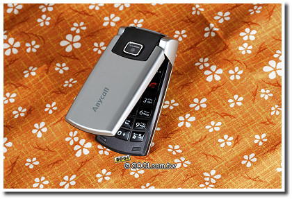另外,在 C408 的機底還有設計標準的 USB 連結埠,提供充電使用。為了增加辨識度以及造型,C408 外蓋上方還有 SAMSUNG 手機標準字樣「Anycall」,簡單的字樣讓原本有些單調的銀灰色外蓋,頓時搶眼起來。