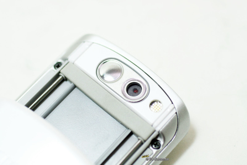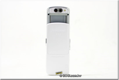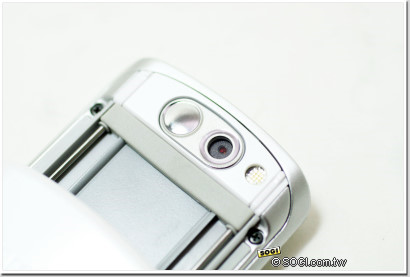 推蓋後,隱藏在背面的相機馬上露出囉,不過跟黑色款的設計並無不同,就是自拍鏡配上閃光燈囉!以及素雅簡單的背影。